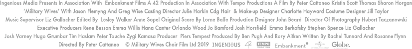 しかし、ケイトとリサは方針の違いで衝突を繰り返し、集ったメンバーたちも、美しい声を持っているのに人前で歌えなかったり、合唱を楽しむあまり音程を無視して歌ったりと、心も歌声もてんでバラバラ。担当将校も耳を覆う有り様だったが、心情を吐露するように共に歌い続けるうちに、同じ気持ちを持つ仲間として互いを認めていく。心が一つになっていくにつれ、次第に美しい歌声を響かせるようになった合唱団のもとに、ある日、毎年大規模に行われる戦没者追悼イベントのステージへの招待状が届く。思いがけない大舞台に浮足立つ妻たちだったが、そんな彼女たちの元に舞い込んだのは、恐れていた最悪の知らせだった——